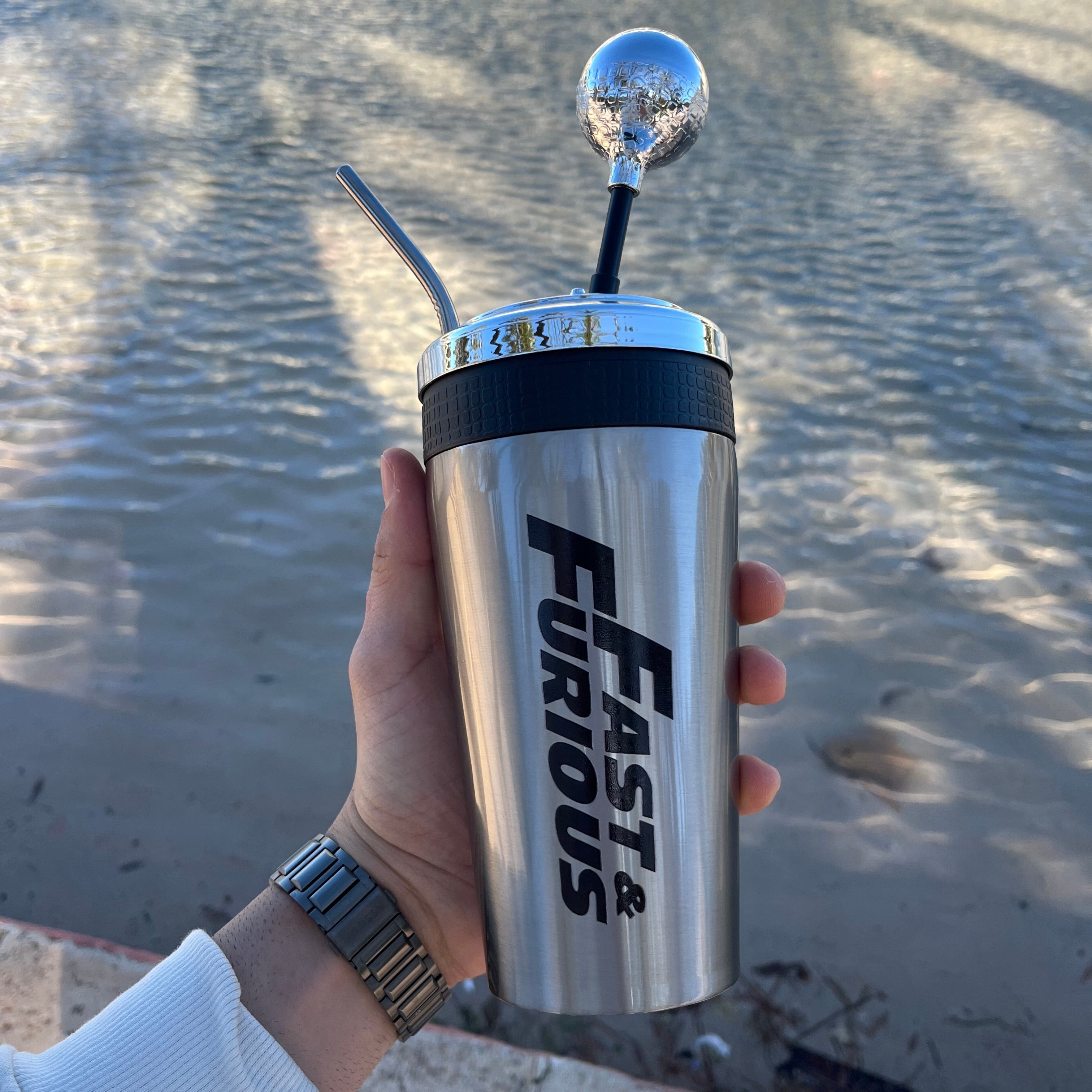 Our thermos is made of high-quality double-layer stainless steel, which keeps your drinks hot or cold for hours. The lid features aninteractive gear-shift leverand a metal straw, giving it a unique and durable touch.